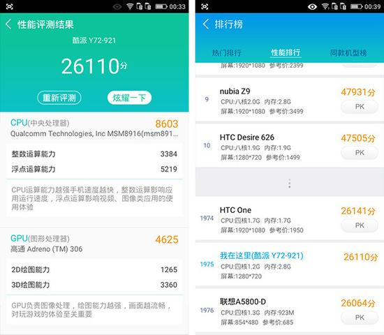 性能表现:内存配置不错,CPU性能一般