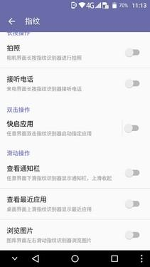 通过指纹界面可以看到,中兴ZTE A910为这个指纹模块赋予了很多功能,例如双击快速启动应用软件(可自定义)、下滑查看通知栏、左右滑动浏览图片等,这些功能可帮助用户实现更为快捷的单手操控。