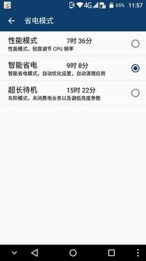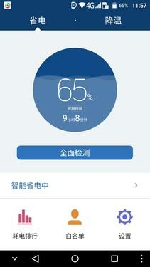 手机温度过高找不到发热源、出门前忘记充电……这些状况估计会有不少人遇到,大多数人的做法就是关机或者重启,这样做虽然能够解决一时,但并不是好办 法。该机自带的省电管家可实时监测手机温度,一旦出现异常即可一键降温。如果出现忘记充电状况,亦可通过省电模式中的超长待机功能,解决燃眉之急。