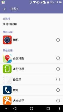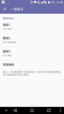 虽然该机最多可录入5组指纹,但由于采用了5.5英寸屏,所以常用的也就左/右手食指。不过,如果你手掌尺寸足够大,还可对不同指纹赋予不同功能,像左手中指打开百度地图、右手中指打开微信等。