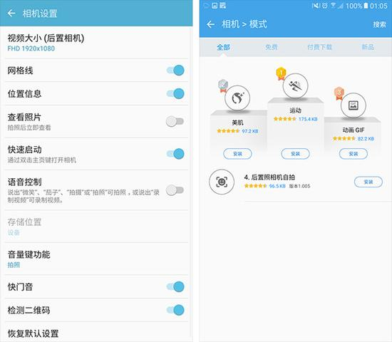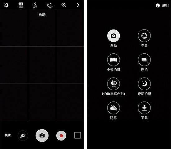 伴随着拍照质量的进步,三星手机的拍照界面同样有了不少的改善,过往“脏乱差”的形象在这几次的TouchWiz升级中得到了很大的改善,首先A9 Pro依旧保留了十分好用的双击Home键进入拍照的快捷开关,其次主界面仅保留了几个常用的功能选项,主要的模式选择均被放置在二级菜单中以便于选择, 最后则是一些有意思但并非必备的功能做成了APP一样的下载选项,让所有用户的个人意愿得到最大的体现。