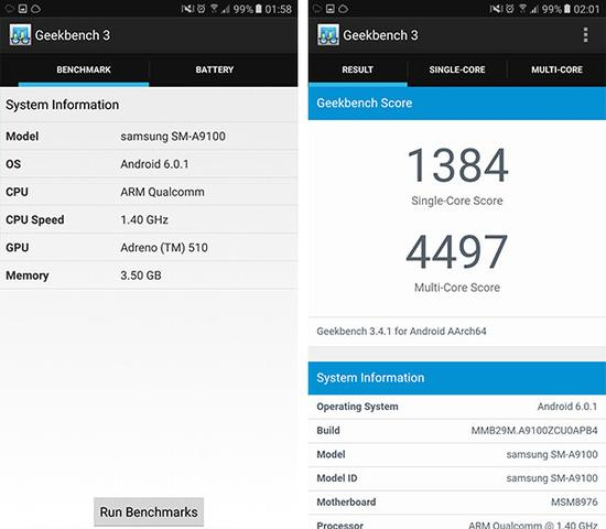 以往三星的“次旗舰”产品总是难以得到手机玩家们 的一致认可,妥协较大的硬件性能要负上很大的责任。不过这次三星给A9 Pro选择的硬件方案算得上是好马遇上好鞍了,处理器为八核64位的高通骁龙652,核心架构为8核心ARM Cortex-A72+A53,是传统的ARM big.LITTLE大小核搭配方案,采用了28nm HKMG工艺并搭载高通Adreno510图形单元。内存为4GB RAM+32GB ROM的组合,对于支持内存卡拓展和安卓6.0的内存管理特性的TouchWiz来说是完全足够了。