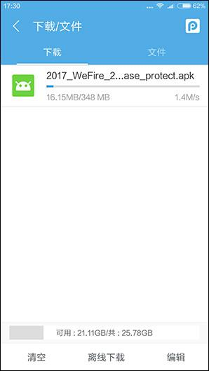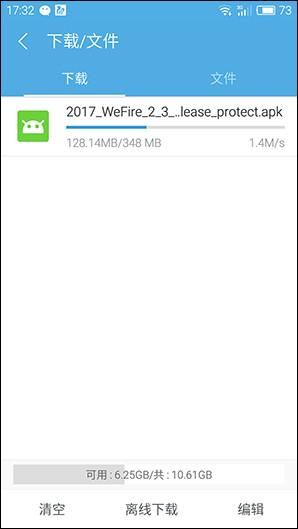 无线网络方面,两款手机都支持双频Wi-Fi。针对手机Wi-Fi网络的下载速度,笔者进行了专项测试。在同一无线网络环境下,通过UC浏览器,在游戏 官网下载同一款游戏,红米Note 3和魅蓝note3的下载速度一般都稳定在1.4MB/S左右,如图所示,速度较快,300多兆的游戏安装包总耗时则都为4分钟多,差异并不明显。