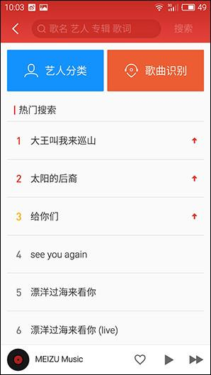 接下来,再来说说它们的系统功能。MIUI 7和Flyme 5.1都预置了系统级音乐播放器——小米音乐和Flyme音乐。它们不仅可以播放本地音乐,同时还支持在线听歌以及下载等功能,进而可以替代了第三方音乐 播放器。其中,小米音乐拥有百万高品质正版在线音乐,而Flyme音乐与虾米音乐战略合作,拥有超过1400万独家优质歌单,囊括了众多热门歌曲,如图所 示,再度突显了两大系统UI的优势。