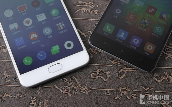 尽管红米Note 3和魅蓝note3都是安卓智能手机,不过两款手机外观方面存在一个重大差异。与红米Note 3等时下诸多安卓智能手机不同,魅蓝note3屏幕下方并未配备常见的触控按键,也未配备虚拟按键,而是类似于iOS手机。这款手机配备了个性独特的实体 Home键,融入了mTouch和mBack,集指纹识别和交互操作于一身,使得手机的日常操作更加集中,也提升了产品的辨识度。
