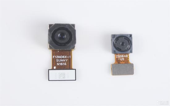 左:后置索尼1300万像素摄像头IMX 258,光圈F/2.0;右:前置500万像素前置摄像头,光圈F/2.0