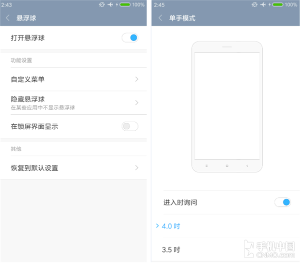 悬浮球功能类似友商,主要方便单手操作,和MIUI 6开始已经引入的单手模式并驾齐驱。