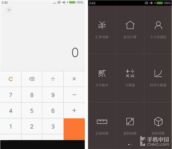 计算过程中随时可以对输入数值进行修改,另外就是计算结果支持一键转换为中文大写,方便填写单据。不仅支持数学计算,货币、单位换算甚至房贷、个税和公积金计算,MIUI都能帮你搞定,对于财务人士来说无疑是一大福音。