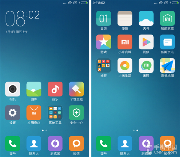 MIUI 8的UI风格给我第一印象就是变化不大,首先将部分内置系统软件的图标更换了一下。其次更换了一些推广应用,例如大众点评消失了,陌陌出现在推荐列表之中,这是从约吃饭到约x的蜕变吗?