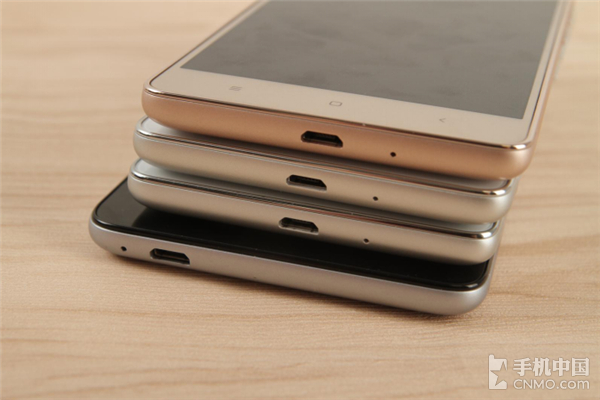 四款红米手机都并没有采用小米手机5的USB Type-C接口,而红米Note 3的USB接口偏向机身一侧。