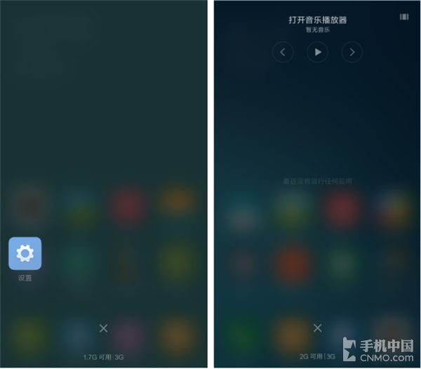 多任务后台依然没有使用原生Android那种前后滑动的卡片式轮询设计,而是延续了MIUI V6时候左右滑动浏览多任务的样子。追加了音乐播放器控制工具,方便切换后台的时候直接和音乐播放器互动,最大好处就是开启了超过十个应用之后,不用再慢 慢在多任务列表中找寻音乐播放器。另一个新功能就是在浏览网页的时候如果遇到微信等社交软件的消息,系统能够将多任务界面一分为二,变相实现分屏多任务操 作。