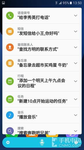 三星S7 edge所搭载的S Voice也可以通过语音命令来实现开速打电话、发短信、创建闹钟/备忘录等等,不过无法实现语音控制系统功能。