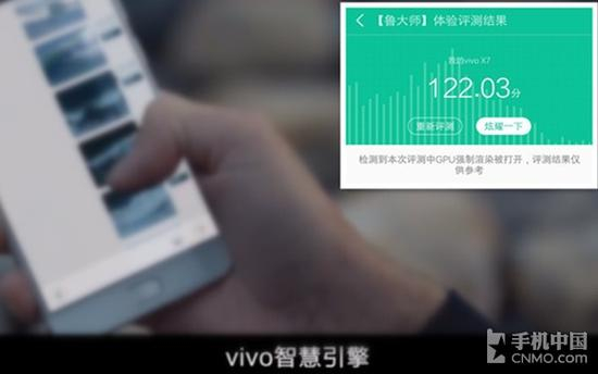 vivo X7在鲁大师体验评测综合评分到达122.03分,在鲁大师发布的2016上半年手机流畅度排行榜中,排名前三的手机分数在110以上(数据时效为上半 年)。体验评测是针对手机的开机速度、桌面滑动速、APP使用速度、网页浏览流畅度以及文件拷贝速度等进行测试,以分数的形式展示给用户,主要是衡量 rom的流畅度,vivo通过资源调度方案有效优化ROM系统流畅度。