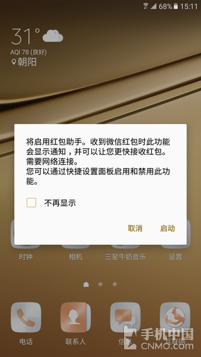 除了拍照和音乐,我上面还提及到了微信。微信是国内用户最为常用的聊天应用之一,其红包功能也深受大家的喜爱,抢红包也成为大家的日常。为此,许多国产 厂商也对此进行了特别的优化,开发出抢红包提醒功能。所以,是的你没猜错,C7也拥有红包提醒功能,只要微信接收到功能,不管在哪个应用里还是在桌面,都 会弹窗提醒,而你要做的就是点击弹窗抢红包。