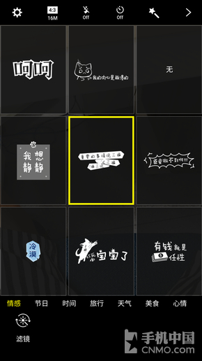 在拍照上,前面已经见识过C7的表示。但是有一点我没说提及的是,该机在拍照上加入了更多的社交元素。无论是前置还是后置镜头,在拍照时均可实时加入水 印来增加照片的趣味性,超过50种创意水印涵盖了情感、节日、旅行和美食等多个分类,基本上可以满足日常的个性拍照需求。ps。看懂下面右图的含义了吗?