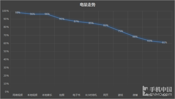 根据我之前对高通骁龙625的体验,这颗处理器虽然在性能上中规中矩,但是其功耗控制能力给我留下了较为深刻的印象,为此我也针对C7做了一次完整的标 准5小时续航测试,外加8小时待机测试。从结果来看,C7的续航成绩可谓非常出色,在经过总共13小时的测试后,C7的剩余电量达到61%,要知道很多机 型都很难超过50%,这一结果也比多数4000mAh电量的机型要好得多(C7的电池容量为3300mAh)。