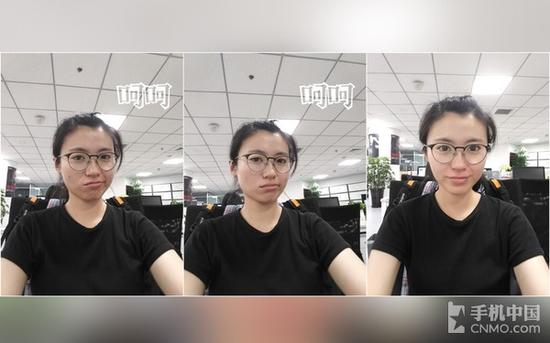 最后再来看C7的自拍表现,下图从左至右分别是美颜效果从低到中到高的自拍样张,无论是瘦脸程度还是皮肤细腻和白皙度,第三张都好过前两者,并且效果自然不夸张。虽然头上的灯过曝了,但是自拍谁会在意这些小细节,因此我推荐大家可以放心大胆地把美颜模式开到最高。