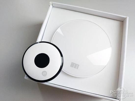 魅族智能遥控器采用了极简的圆型弧线外观设计,如鹅卵石般圆润光滑,说得具体点就像是我们传统印象里的UFO飞船一样,放在客厅和房间里也不会觉得突 兀。机身上由黑白两种不同的材质组成,白色材质上面印有代表魅族(MEIZU)的m字Logo,黑色部分采用红外信号穿透性强的聚碳酸酯材料,里面一共有 四颗红外发射模块,可以实现正面360度的射频遥控功能,并拥有20米的遥控距离,让用户摆放智能遥控器时更加灵活。