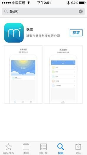 在魅族智能遥控器底部和包装盒均在二维码,使用手机扫描后选择对应安卓或者iOS系统的“魅家”客户端App进行安排,目前支持Android 4.3系统以上及iOS7.0系统(且iPhone 4S)以上的设备安装使用。