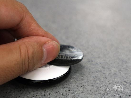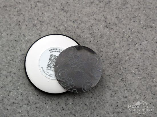 魅族智能遥控器直径为40.6mm,厚度10.5mm,十分小巧方便随身携带。智能遥控器底部有一块小磁铁,可以直接吸附在各种金属表面,同时包装也还 附送一块软质3M胶贴,用户可以将3M胶贴粘贴在墙壁或者其他物体表面,然后魅族智能遥控器就可以通过磁铁吸附在上面,使用方便。