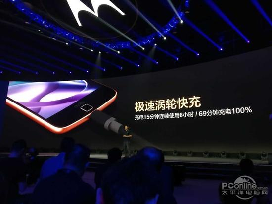 骁龙820支持Quick Charge 3.0规范,Moto也在充电效率方面带来全新的Turbo Power涡轮快充技术,峰值功率为15W。Moto Z充电15分钟即可连续使用6小时,接入电源69分钟足以充满2600mAh电池。