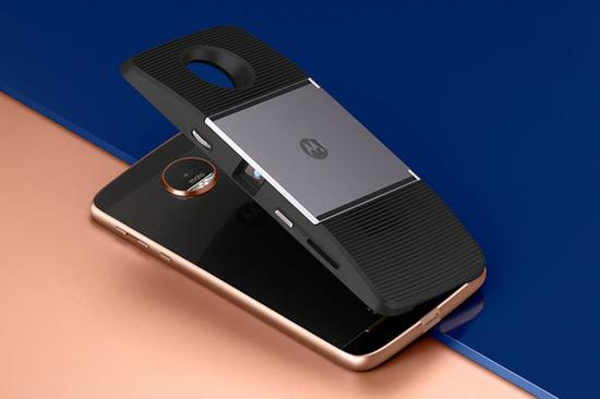 实际上,Moto Z设计方面最大的创新在于采用了模块化的设计。Moto Z机身顶部和底部都有磁力,而后盖16个金属触点可用来接驳不同的模块。目前,Moto Z也已经有很多丰富的功能拓展模块,包括了电池、外放以及拍照等多方面的拓展,甚至还有丰富的个性化手机背壳。