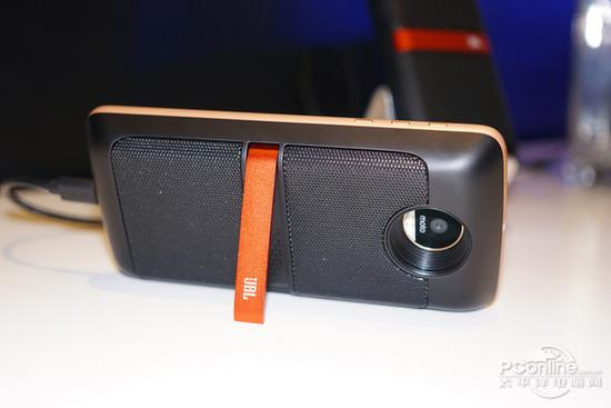 摩音-JBL扬声器模块可以带来高品质立体声效,仿如身临其境的视听体验,自带支持10小时播放时间,可独立通过USB Type-C接口充电。虽然Moto Z内置的扬声器效果不差,但在搭配摩音之后,外放效果更立体雄厚,但该模块的售价高达699元。