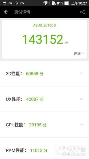 使用安兔兔进行跑分测试,华硕ZenFone 3尊爵的得分稳定在14.3W左右,相比15W+有一定的差距,不过因为拿到的还只是工程机,相信量产机的优化会进一步得到提升。