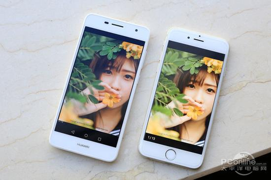 在华为畅享6对比苹果iPhone 6s的测试当中,可以看到华为畅享6的色彩表现更好,虽然苹果iPhone 6s的亮度占优,但是整体画面观感上面华为畅享6更讨好人眼。