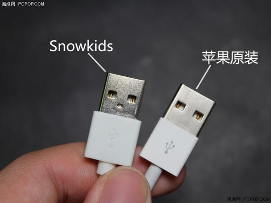 Snowkids的数据线在电源接口上的金属区缺乏二次喷漆,给用户一种很低品质的感觉,除此之外也没有其他外观方面的缺点。