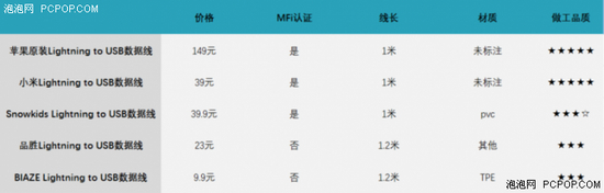 以上就是此次横评选取的5款Lightning to USB数据线,苹果原装Lightning to USB价格最贵,达到149元,而最便宜的则是BIAZE的数据线,售价仅为9.9元。