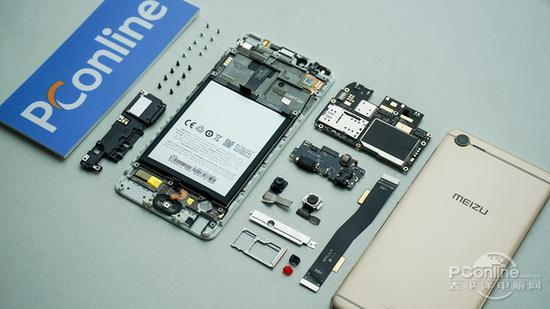 基本上魅族的手机拆解方式都相似(除了那些好老的MX3、MX2机型),取出卡托后再卸下机身底部的梅花螺丝,然后用吸盘从屏幕下方吸起,再用撬片分离。