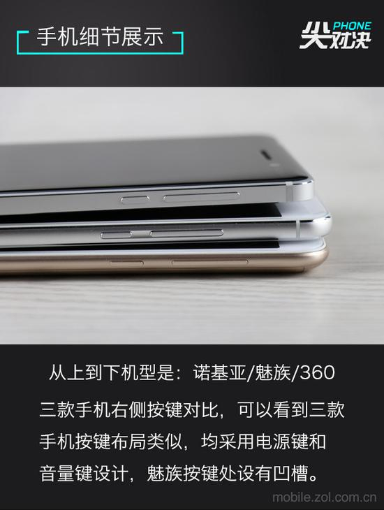三款手机在机身侧面的设置上较为一致,均是左上为SIM卡卡槽,右侧为电源键和音量键。唯一比较明显的区别就是魅蓝X在按键处设有凹槽。