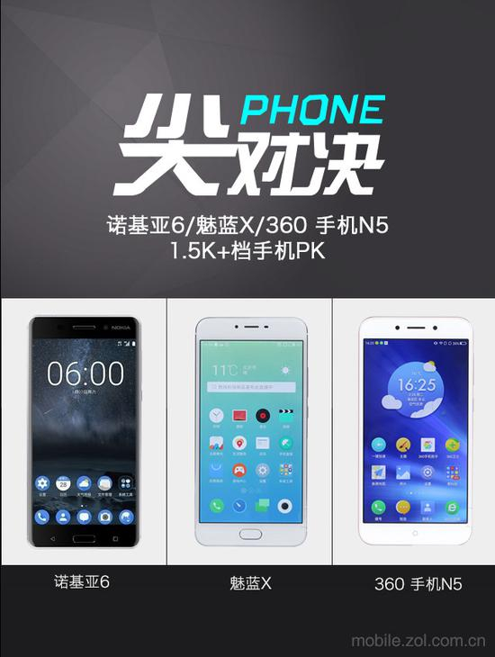 1.5K+哪个值 诺基亚6/魅蓝X/360 N5对决