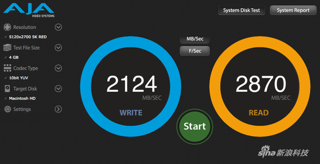 另外一个提升点是硬盘,Fusion Drive,也就是固态闪存+传统机械硬盘;这依然是新iMac系列标配,但如果不计成本,你当然也可以像我(的评测机)一样定制SSD版本。这块硬盘的读写速度表现惊人,用读写测试软件测了下,写入速度2140MB每秒,读取2800MB每秒(转算后过2G了……),比上次那个测爆了读写软件的15寸带Touch Bar的MacBook Pro又提升了40%左右。