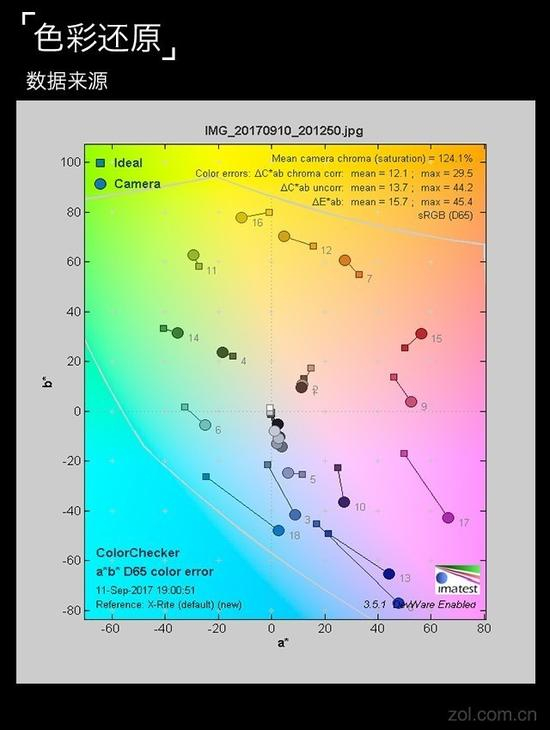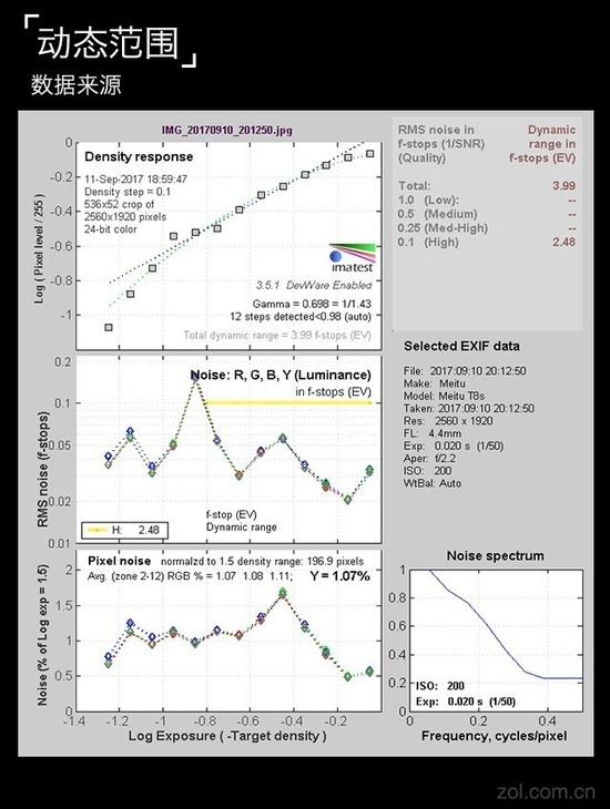 在拍照测试方面,我们以标准光源D65环境下实际棚拍为依据,以市售机型实际表现通过Imatest客观对比将被测机型进行评分。Imatest 是一款相当不错的数码影像测试软件,涵盖了 SFR 、色彩、杂讯以及兼用于打印机、扫描仪等进行完整测试内容。