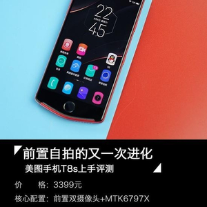 2017年9月7日,美图公司在北京798举办发布会,正式发布了新款美图T8s拍照手机,售价3399元。该机最大的亮点就是美图第一次在自家手机中使用了前置双摄像头,并借此开启了电影人像模式的自拍功能。作为T8的进化版本,美图T8s还有什么其他方面的提升,就跟着我一起进入今天的上手评测吧。