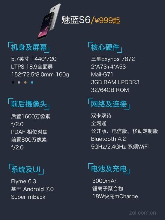 在存储搭配上,魅蓝S6使用了3GB的RAM和32/64GB的ROM,虽然称不上很大,但是也足够使用。魅蓝S6整体配置处于同价位中较高的,而久违了的三星猎户座处理器在保障了性能的同时还为“煤油”带来了一丝曙光:既然中端机已经迎来了三星,那么旗舰机型还会远么?