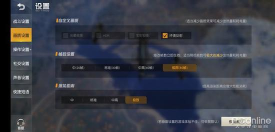 听起来麒麟710似乎挺不错,但是它实际的使用体验又如何呢?我们使用了《荒野行动》来实际体验下(为了测试极限,我们在开启了所有能开启的最高画质,帧数设置为60,渲染距离为极致)。