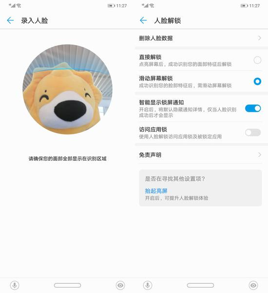 在用户的使用习惯方面,EMUI也提供给用户更多的选择,可以设定为面部识别后直接解锁到主界面,也可以在识别成功后停留在锁屏画面。在通过机主的面部识别之前,手机通知的内容将不会直接显示出来,保护了用户的隐私。