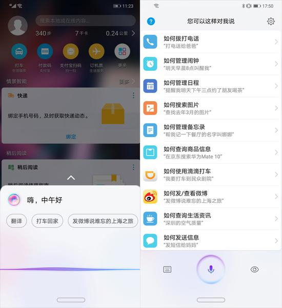 在底部单键导航的左右两侧,EMUI还提供了可以直达语音助手和扫一扫的快捷入口,前者支持多种语音操作指令,并能够与第三方应用联动,发微博、打车等都可以通过语音完成。而扫一扫功能不只是扫描二维码那么简单,物体识别购物、实时翻译和扫题功能都可以在这里实现。
