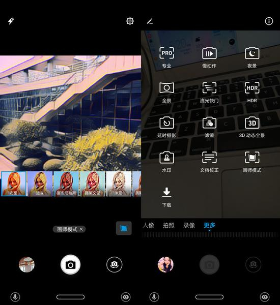 EMUI的拍照界面比较简单,易于操作。同时多种功能,也是当前安卓阵营中手机拍照提供较为丰富选项的一款,例如动态图片、AI美拍、流光夜拍等功能都应有尽有。而在实际使用当中,AI美拍是使用频率最高,效果最出众的一个。