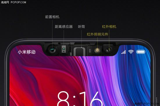 上文提到了:小米8的刘海区域除了前置摄像头等元件之外,还额外增加了红外相机和红外照明元件。解锁时,红外照明元件会发出波长为940nm左右的近红外光打在人脸上,再由红外相机接收反射的红外光成像,实现解锁。