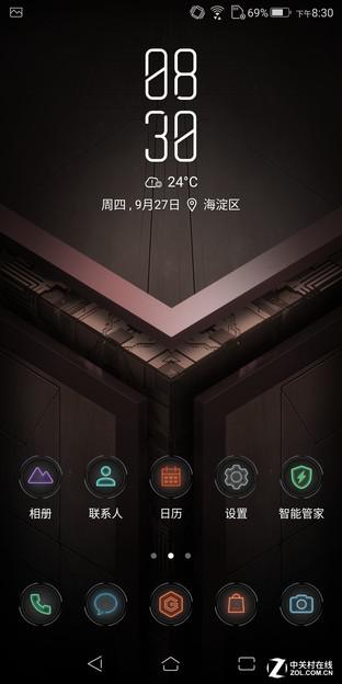 ROG 游戏手机系统中的X模式,可以让玩家更快速的在游戏模式和一般模式切换,下拉任务栏就可以选中X模式按钮,或者设置Air Triggers键长按打开,即可快速进入游戏模式。系统的UI壁纸也会随着X模式的开启,由原本黑灰色主题动画过渡到战斗的火红色主题。
