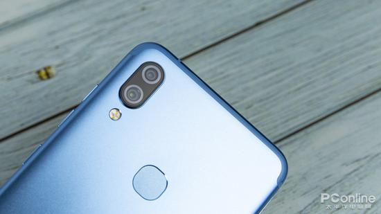 机身背面的左上角坐落着2000万像素索尼AI超画质双摄以及闪光灯,中间则是指纹识别模块。