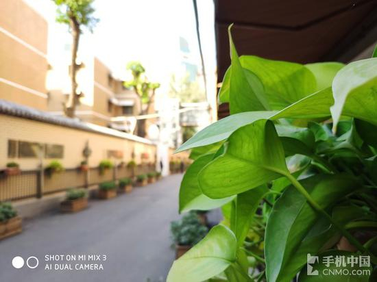 小米MIX 3总体而言颜色更为浓烈些,色彩饱和度更高。无论是天空的颜色还是建筑的质感都十分突出。虚化效果方面也是十分优秀,叶子的边缘抠图也十分准确。至于这两者你到底更喜欢哪种风格,就看你的个人喜好咯!