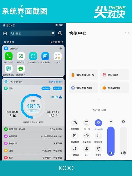 再来了解一下小米9和iQOO的系统设计,iQOO和小米9均搭载了基于Android 9的深度定制系统——Funtouch 9和MIUI 10,两者的系统已经趋于成熟,且培养了各自忠实的用户群,系统升级也更着重于修修补补,你可以看到两者的功能体验已经高度趋同,趋于稳定。因此这次我们更聚焦于两者在AI方面的差距。