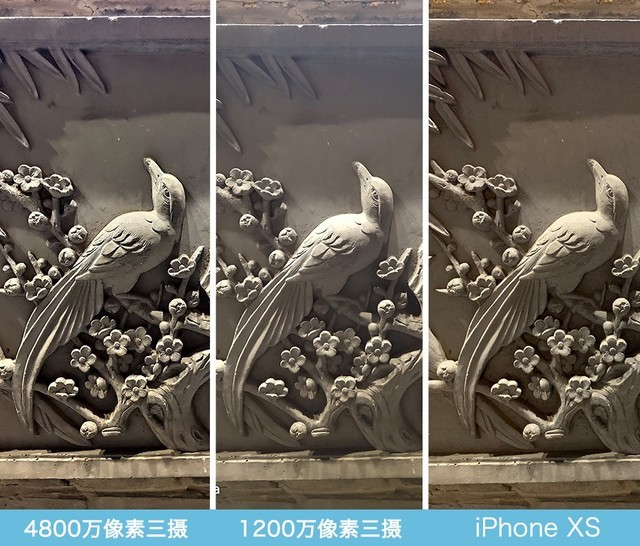高像素方面,Android阵容已经干到了4800万像素;三星S10系列,主镜头为1600万像素,副镜头还是双摄1200万像素;苹果这边,iPhone XS系列还是IMX363的传感器,也只有1200万像素。原因为何,先来一组实测对比。
