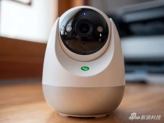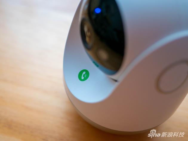 侧面是扬声器和麦克风,同时在摄像头下方,有一个绿色的呼叫按键,这枚按键支持触控操作。在按下之后,与之相连的手机就会接到这台相机发出来的视频通话,同时,也可以通过手机端APP来呼叫这台摄像机。如果家里有老人或是小孩的话,这样的功能就非常方便了。如果配合360智能摄像机的“收藏位置”功能,就可以很方便的定位到目标点,达到照顾家人的目的了。