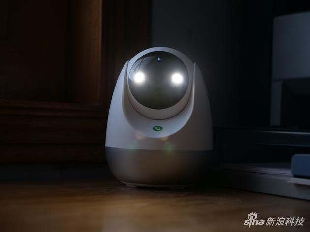 当光线比较安的时候,可以打开自带的LED补光灯。当然,这台智能摄像机还支持全彩夜视和黑白超清夜视功能,通过APP可以进行切换。如果外出出差,长时间不回家,可以打开“声光警报”功能,这个功能可以实现自定义警戒区域,如果遇到异常,就会主动推送消息到手机端。